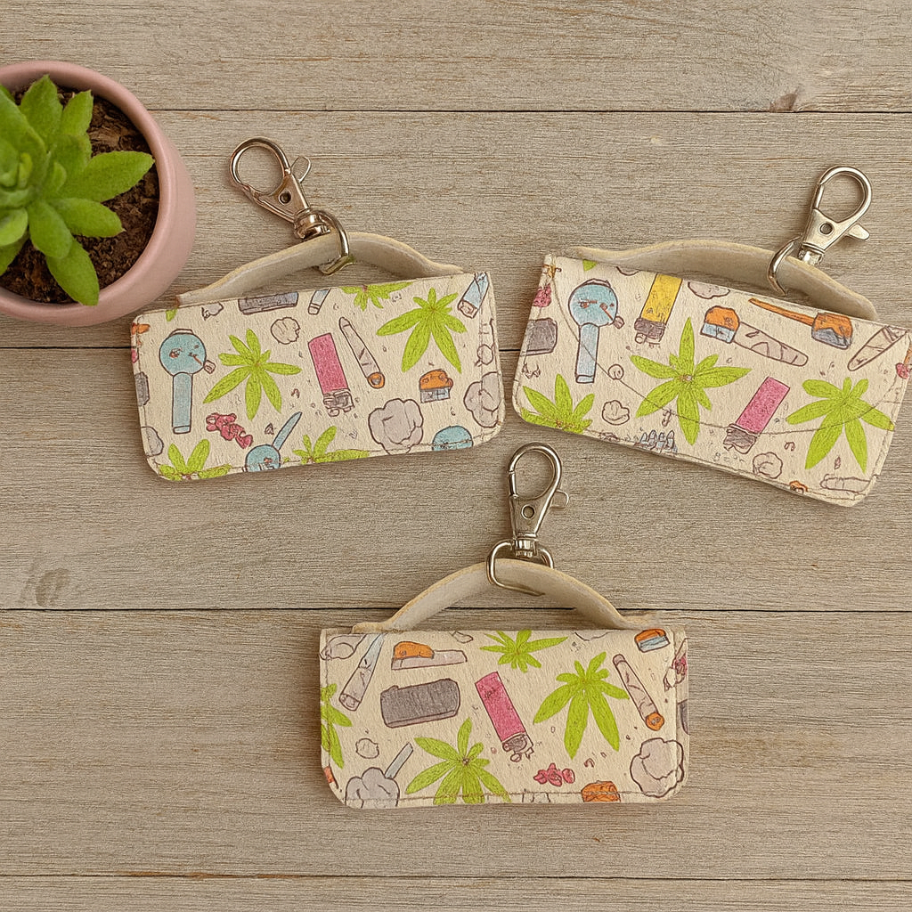Made with durable vinyl and lined in felt, a secure snap, and a key clip to hook onto your purse, backpack, or belt loop.