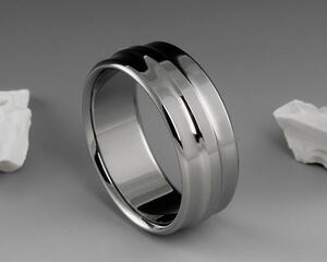 Flat profile solid titanium (aerospace grade) ring, with a contrasting solid wide platinum inlay. A classic simple style perfect for a wedding ring, anniversary band, or simply a gift for your special someone. A comfortable, durable and affordable alternative to other precious metal rings.
