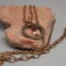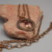 Torched and hammered copper wire. Textured and torched brass circle. Gold/pink Glass Heart, Red glass bead. Antiqued copper chain and extension chain. The necklace is adjustable to 21 inches. The pendant is 1 1/4 inches long.