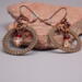 Torched and Hammered copper wire. Textured and hammered brass circle. Gold/pink glass hearts, Red glass beads. Earrings are 1.5 inches long.