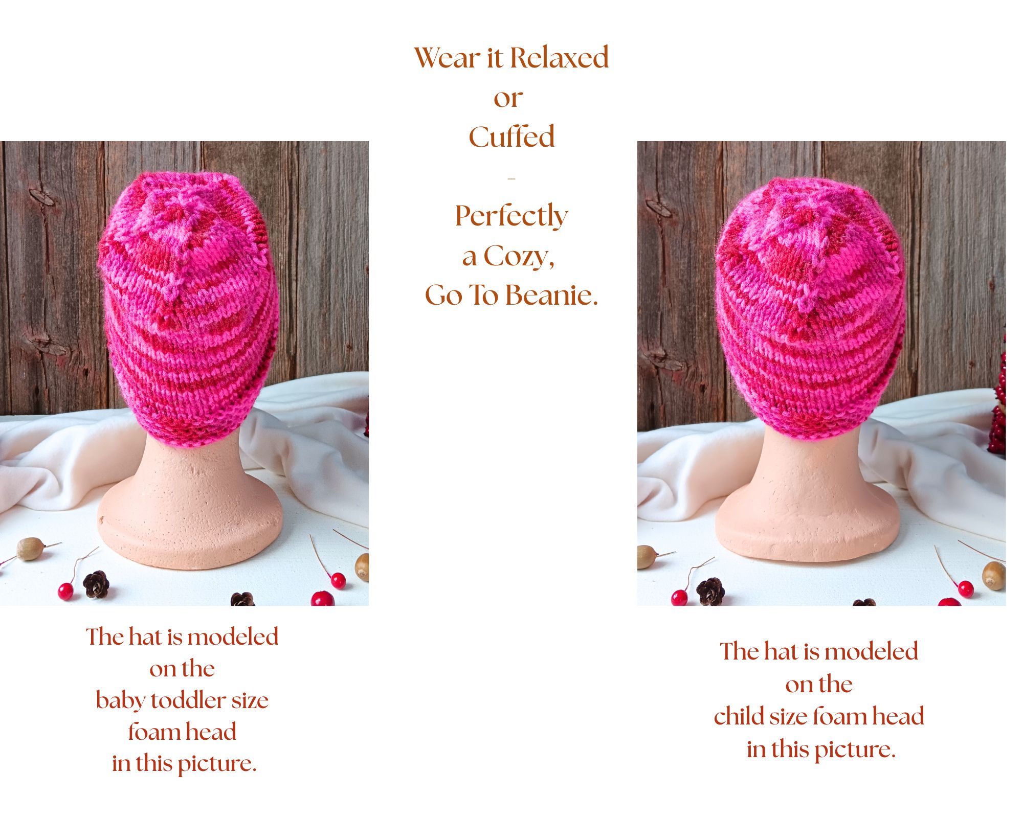 Knit with high quality 100% acrylic yarn for softness, warmth, and long lasting wear — ideal for busy, active kids.