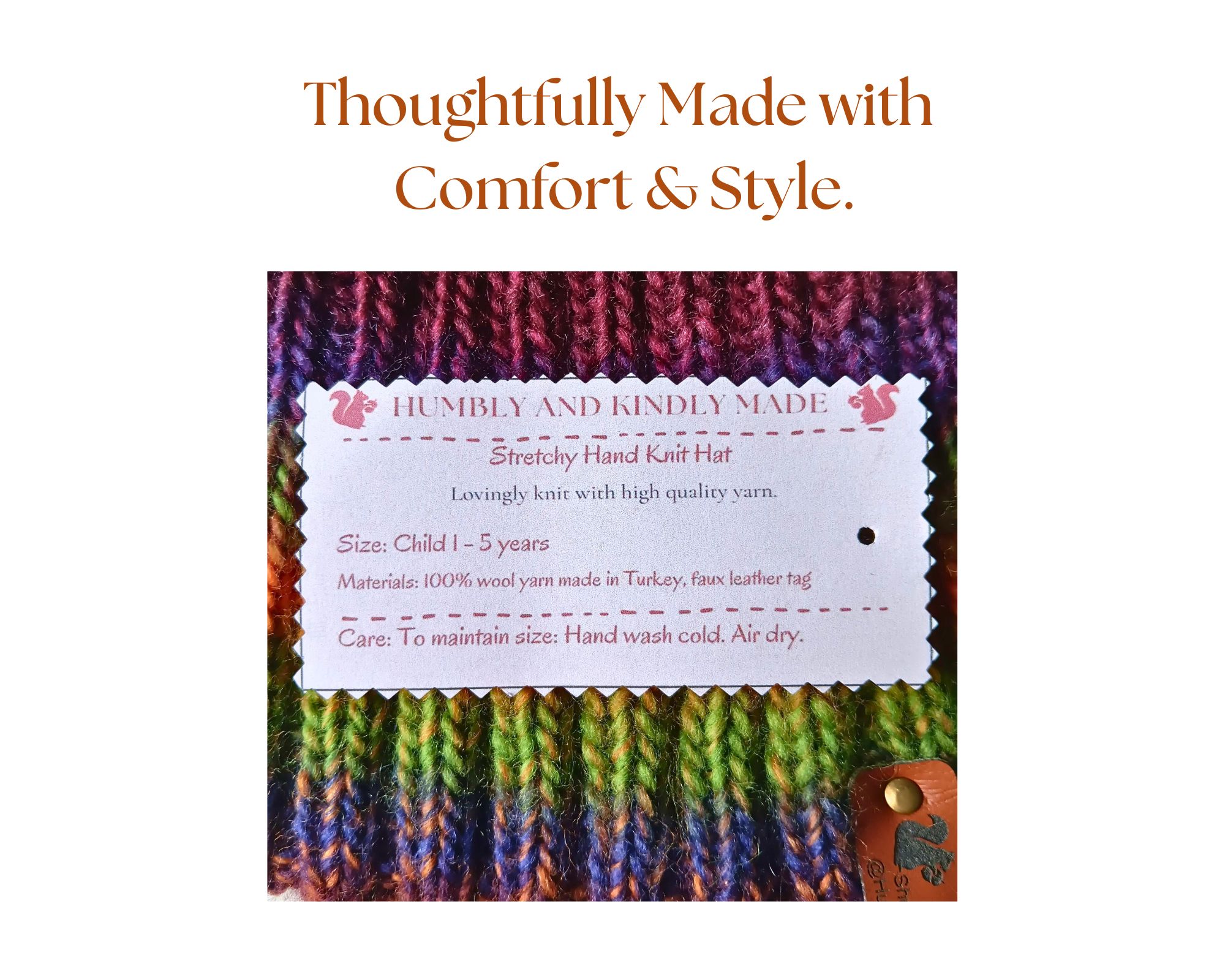 Each stitch is thoughtfully knit with a rainbow ombre wool yarn from Turkey that’s warm without being itchy, soft to the touch, and flexible enough for growing kids.