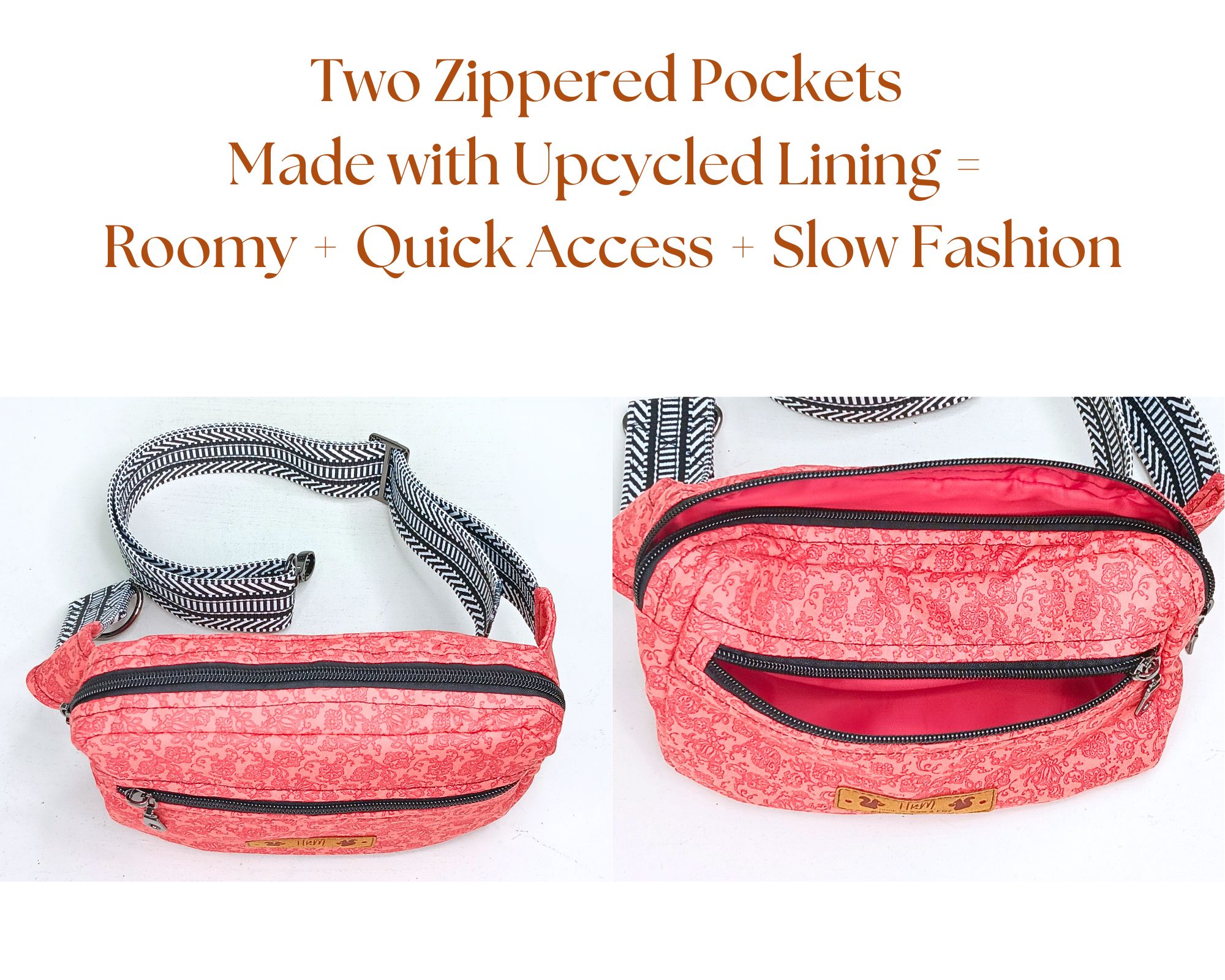 Stay organized and eco-conscious with this durable, handmade fanny pack — perfect for errands, travel, markets, and dog walks. The adjustable strap ensures comfort, while quality zippers and stitching make it last.