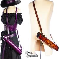 I've been a maker since I was a kid, my dad being a mechanic, wood crafter, and all around handyman; I grew up learning to use a variety of tools. As an art major I learned a variety of additional skills, sculpting, painting, pottery, and jewelry. I started playing with leather in the late 90's and spent 3 years in the mid 2000's traveling the country working at Renaissance/Medieval Faires. Then in 2010 I settled down in north Idaho, and soon after opened my first Etsy shop making and selling steampunk goods. I sell in person at several events in the northwest US region, and as the popularity of steampunk waned, I continued to broaden my cosplay prop and accessory line to include several genera in the sci-fi/fantasy realm. Our brands now include Steampunked Out (steampunk goods made from leather, brass and/or wood), Nemesis Gear (general hero/villain and fantasy leather accessories), and Nox Hollow (our brand for handcrafted magic wands made from more than 30 different woods). I'm always making new items and playing with new ideas. While I do get inspiration from movies/TV and the wide world of cosplay, I design and make everything myself from the start and do not use any store bought patterns. This keeps my products fresh with a unique style. I hope you enjoy your purchase for many years of cosplay fun. Thank you for your support!