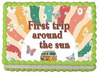 Boho Retro 1st First Birthday Themed Birthday Party Cake Topp...