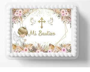 Personalized Baptism Mi Bautizo Pink Flowers Image Edible Ca...