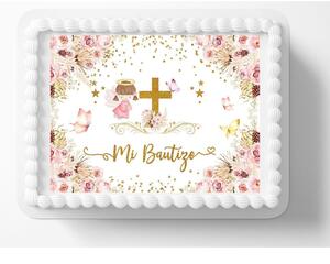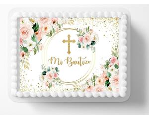 Personalized Baptism Mi Bautizo Pink Flowers Image Edible Ca...