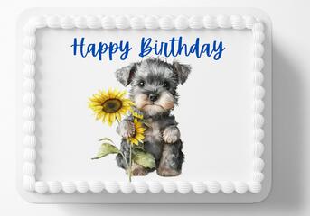 Schnauzer Puppy & Sunflowers Edible Image, Edible Cake Topper...
