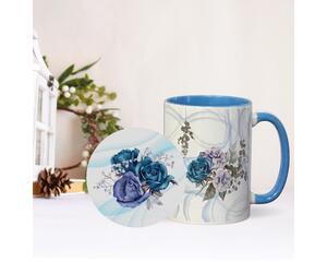 Blue Roses Ceramic Mug and Coaster Set; 15 oz Mug and Coaster...