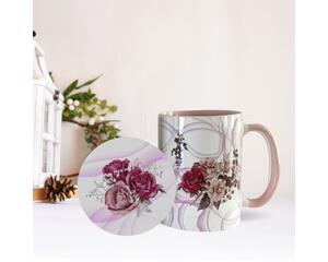 Pink Roses Ceramic Mug and Coaster Set; 15oz Mug and Coaster ...