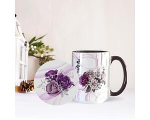 Purple Roses Ceramic Mug and Coaster Set; 15 oz. Mug and Coas...