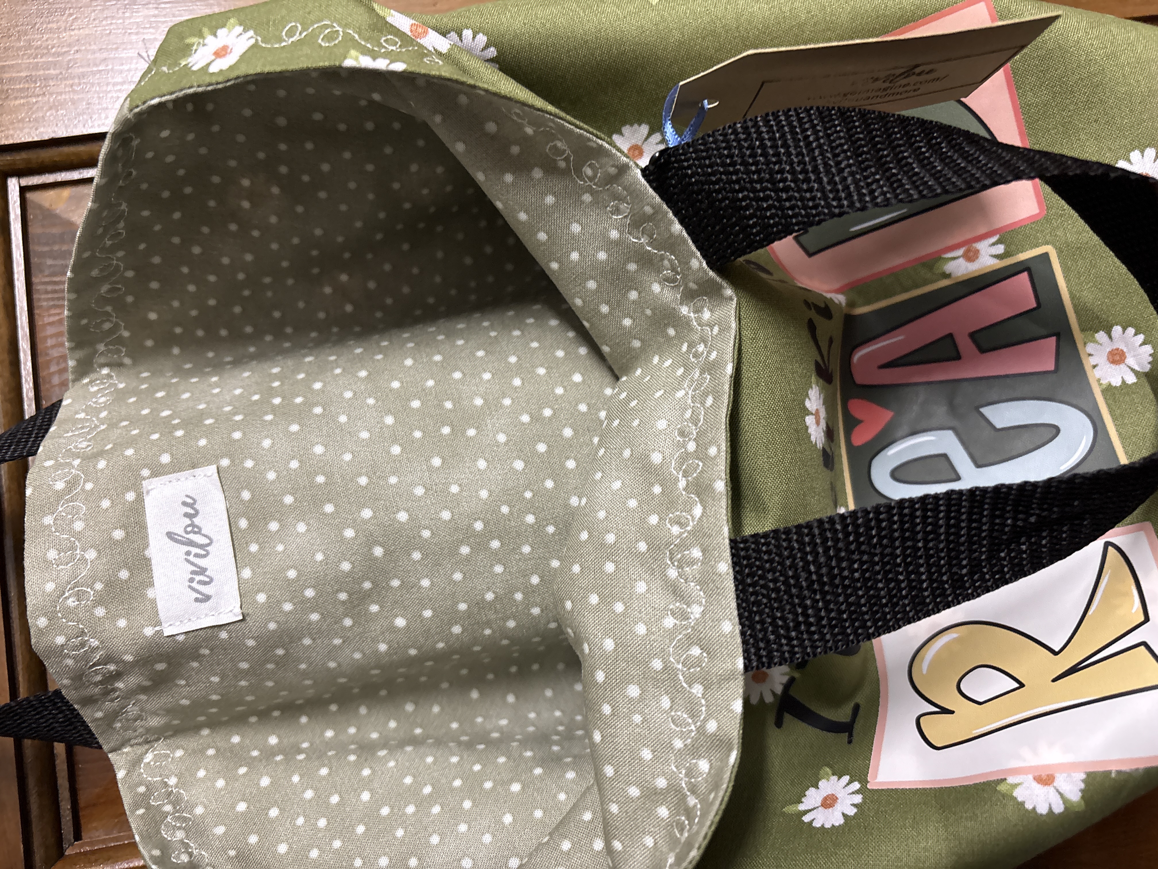 Great for running to the grocery store . Perfect for knitting , dance whatever you need an extra bag for. Size 13” x15” fully lined tote bag