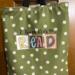 These tote bags are a great size 13” x 15” not counting 10” handle.. many great uses. All have a matching lining to coordinate with prints.. this one has a longer shoulder strap