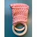 This kitchen towel holder is made of 100% acrylic yarn.   It is designed to go over a drawer pull or oven door handle.  The towel is then placed through the two wooden rings to hold the towel firmly in place.   These have been a life changer for me!  No more bending down and picking up the towel off the floor constantly!