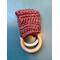 This kitchen towel holder is made of 100% acrylic yarn. It is designed to go over a drawer pull or oven door handle. The towel is then placed through the two wooden rings to hold the towel firmly in place. These have been a life changer for me! No more bending down and picking up the towel off the floor constantly!