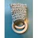 This item is crocheted acrylic yarn on two wood rings.