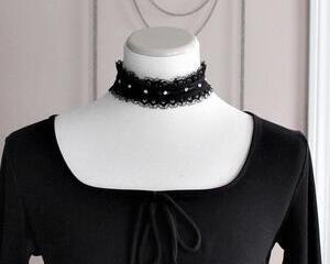 Rhinestone Choker. Black Lace Reversible Choker. Adjustable