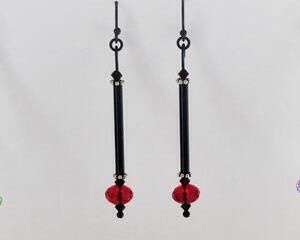 Red Dangle Earring. Crystal teardrop with black and sterling ...