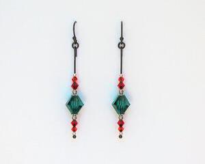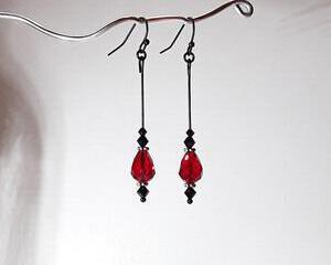 Christmas Earrings. Red crystal dangles on black wire with Fr...