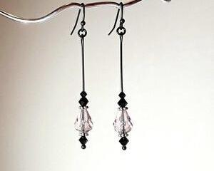Pink Crystal Dangle Drop Earrings with black and sterling acc...