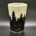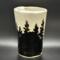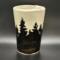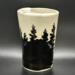 Travel mug with forest design created with underglaze.