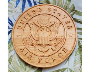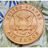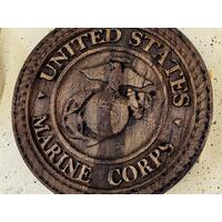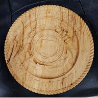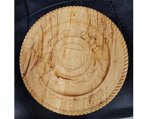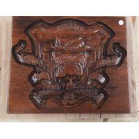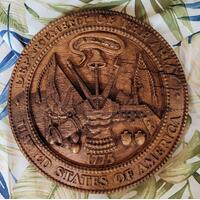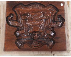 This plaque is 3d carved in to a solid block of hardwood. Then it is sealed and finished with a conversion varnish, and a sawtooth hanger strip is fastened to the back.