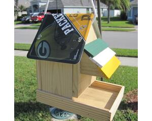 Webmizz1: My husband and I are from Wisconsin and Georgia originally. It’s ironic but we sell at lot of bird feeders from Wisconsin (GO PACK) and Georgia (how bout them Dawgs). My husband loves work working and we love birds, so we started to make bird feeders. The roofs are made from Licensed aluminum license plates from professional and college sports team around the US. We can also customize with the plate of your choice if available.