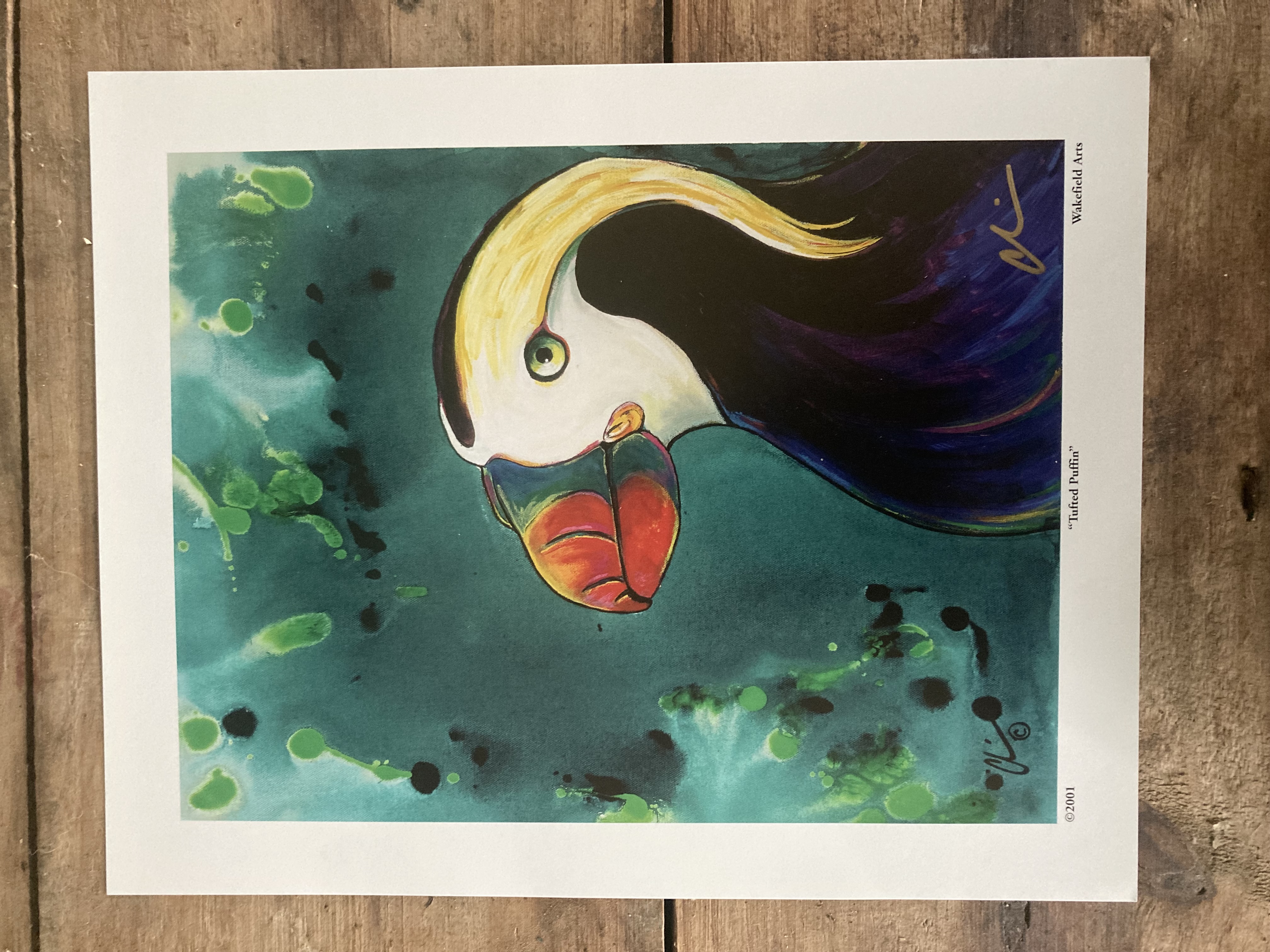 "Tufted Puffin” is an open edition print that is signed and attractively packaged on foam core in a clear vinyl bag with an artist bio enclosed in back.