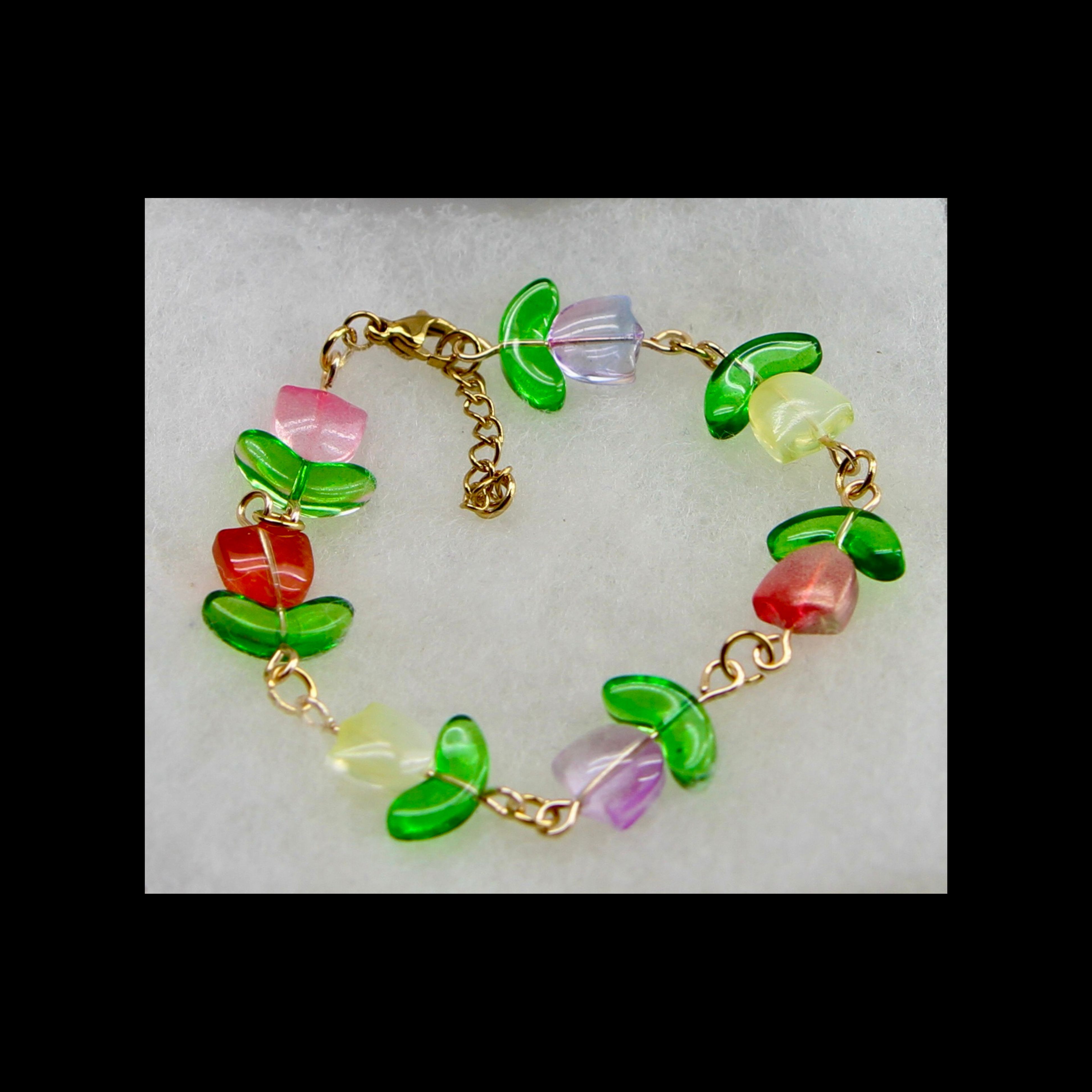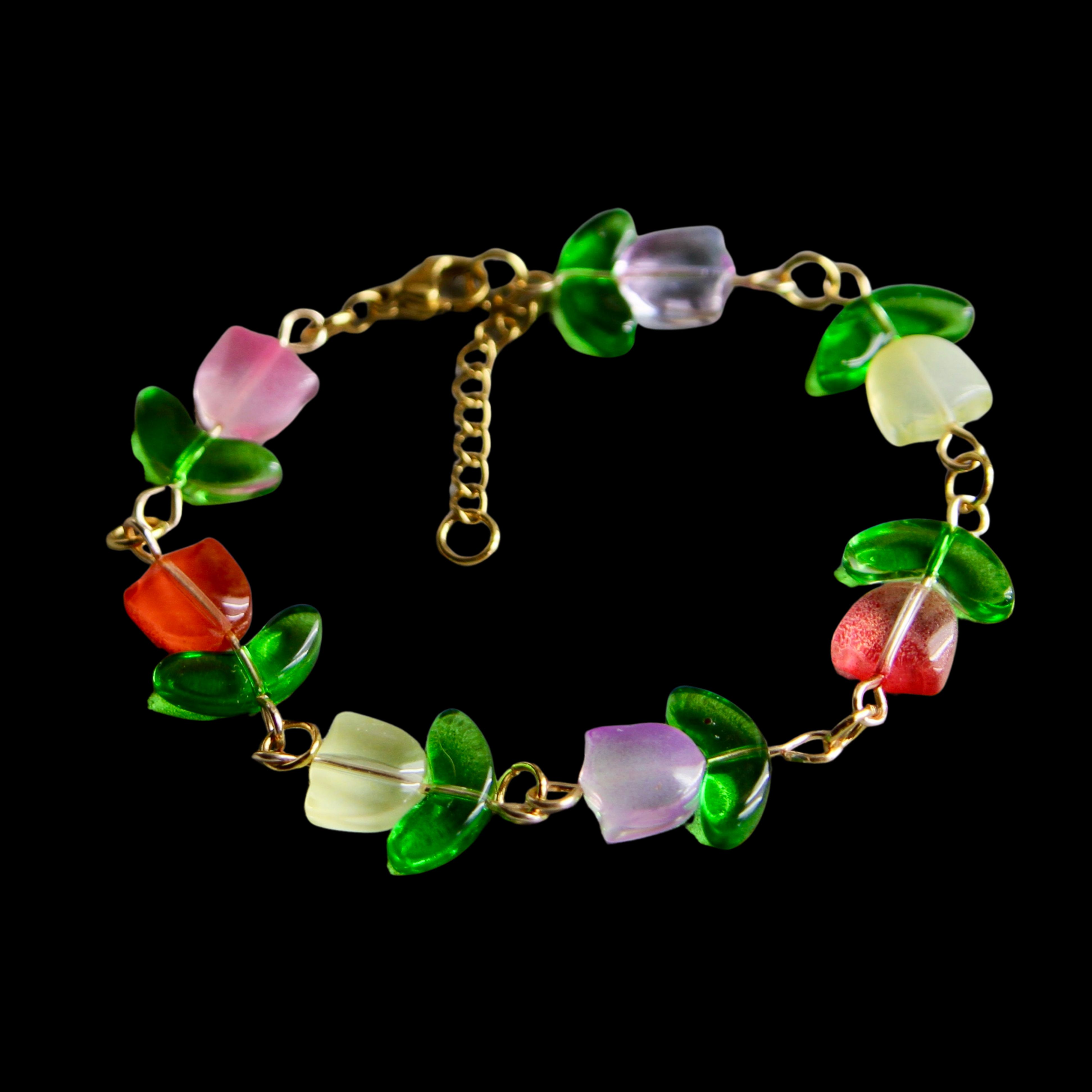 > Multi Colored Translucent Tulip Shaped Glass Charms