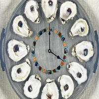 All of my pieces are one a kind, made by me. I have a collection of plates and platters from area home decor stores and secondhand shops. The oyster shell comes from restaurants in my area, Pacific Grove and Monterey CA, trips to my hometown of New Orleans, LA, and an oyster bar in Denver where I have family. Some of the seashells are purchased and others are collected along the coast of Monterey Bay, the beaches of Perdido, FL and other beach vacations. After choosing a plate and drilling a hole in it for the clock mechanism, I select the oyster shell and seashells and grind them down on the back to sit properly on the plate. Once glued into position, the shells are sealed with either a semigloss acrylic sealer or a high gloss resin sealer, depending on the look I am going for. The mosaic ring, set like the minutes of a clock, is made with real sea glass, shell pieces and/or tumbled beach glass. And as a final touch, a single real pearl adorns the 12 o'clock oyster shell. Due to drying and curing times, each clock takes several days to make.