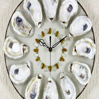 OYSTER PLATES - Beautifully hand-crafted oyster plates featuring six or more real oyster shells set on a unique collection of dinner plates and platters. Each hand-selected oyster shell is finished with a high gloss resin to give it a fresh-shucked wet look, revealing the oyster shell's rich colors. The perfect gift for oyster aficionados everywhere! For decorative use only.