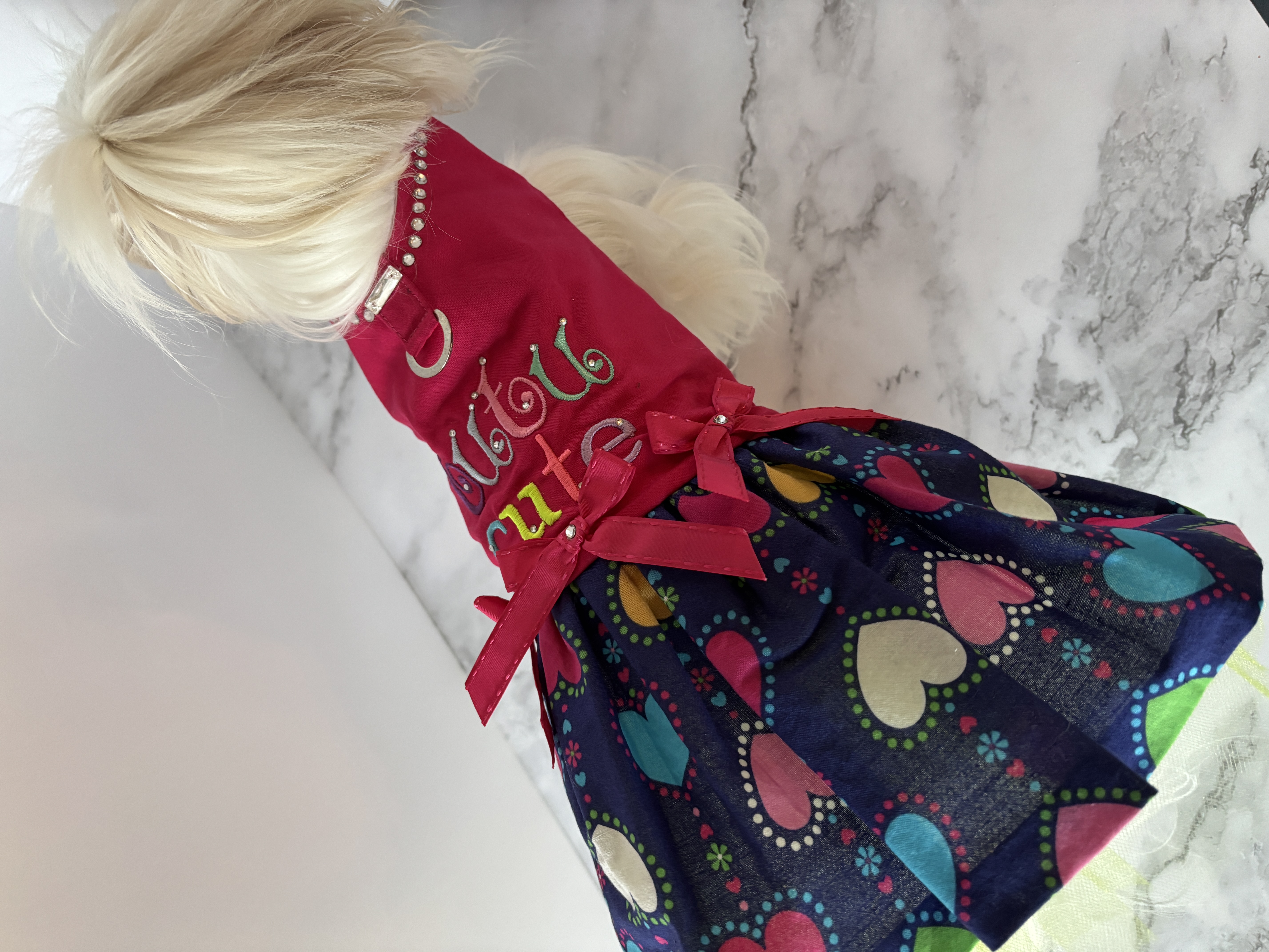 The harness is so fun and playful, with Tutu Cute embroidered on it, and would be perfect to wear anywhere. I made it using Austrian crystals around the collar area to look like a blingy fancy necklace, and it has a solid cast D-ring to use for a leash. I made this using pearls and pure Austrian Crystals (I can no longer use the name brand of the crystals because I am no longer a brand partner with them), and they are stunning and capture the light so beautifully, and there is a generic crystal dog bone at the front of the neck.