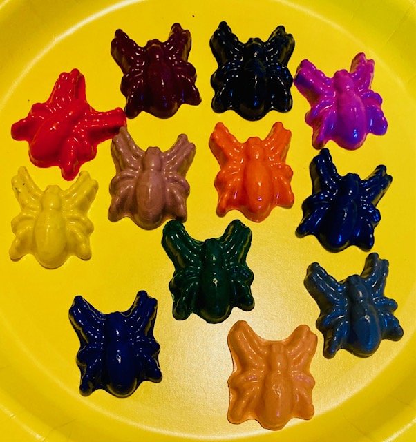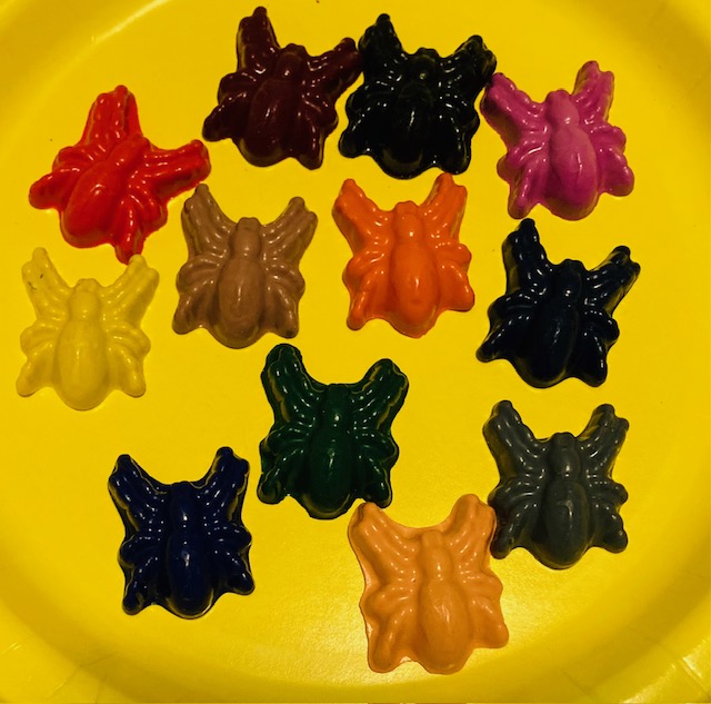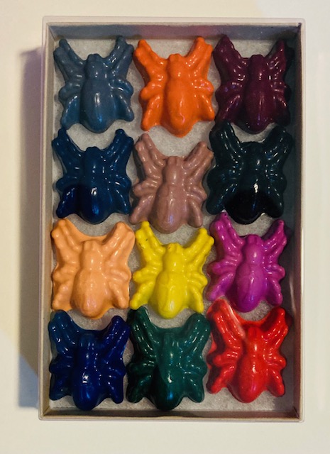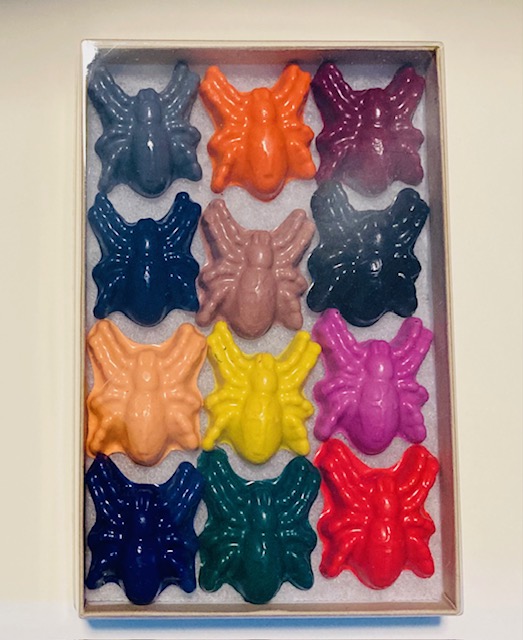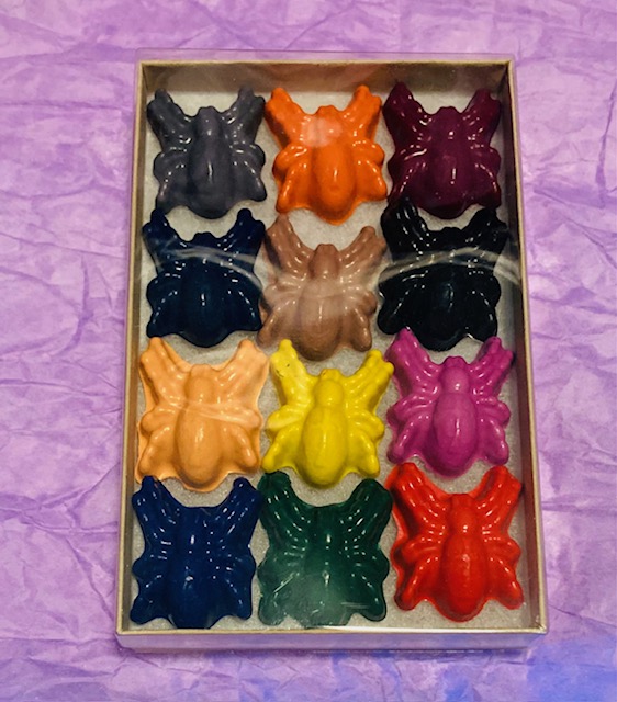 You are looking at purchasing a set of 12 small spider coloring crayons. These are app. 1.49 x 1.24 x .48 inches. These make a great birthday gift, an addition set to Halloween crayons, or a just-for-fun set! You’ll get a set of multiple colors. You can decorate the packaging box with stickers or ribbon if you’d like; that’s why I didn’t add these things on.