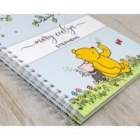 Personalization is printed on the white banner on the cover. When ordering, please include your personalization information in the comments box. Please note character limitations. If your text is longer than allowed, message me and I’ll see if I can fit it in by reducing the type size. If you need suggestions on what to print, send me a message and I'll send you some examples.
