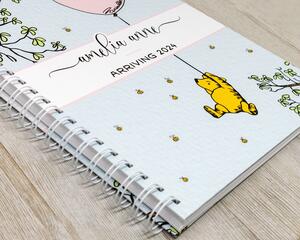 - 90-page book begins with birth information, space for footprints and photos, family tree and babies’ firsts. Monthly prompted, lined and photo pages follow, ending with babies’ first birthday.
