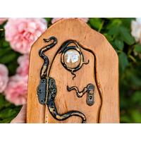 The beauty of the twisted wood on the side of this door will captivate all who see it- even the Fairies, Pixies and Elves! Every door is made to order and will vary slightly from photos.