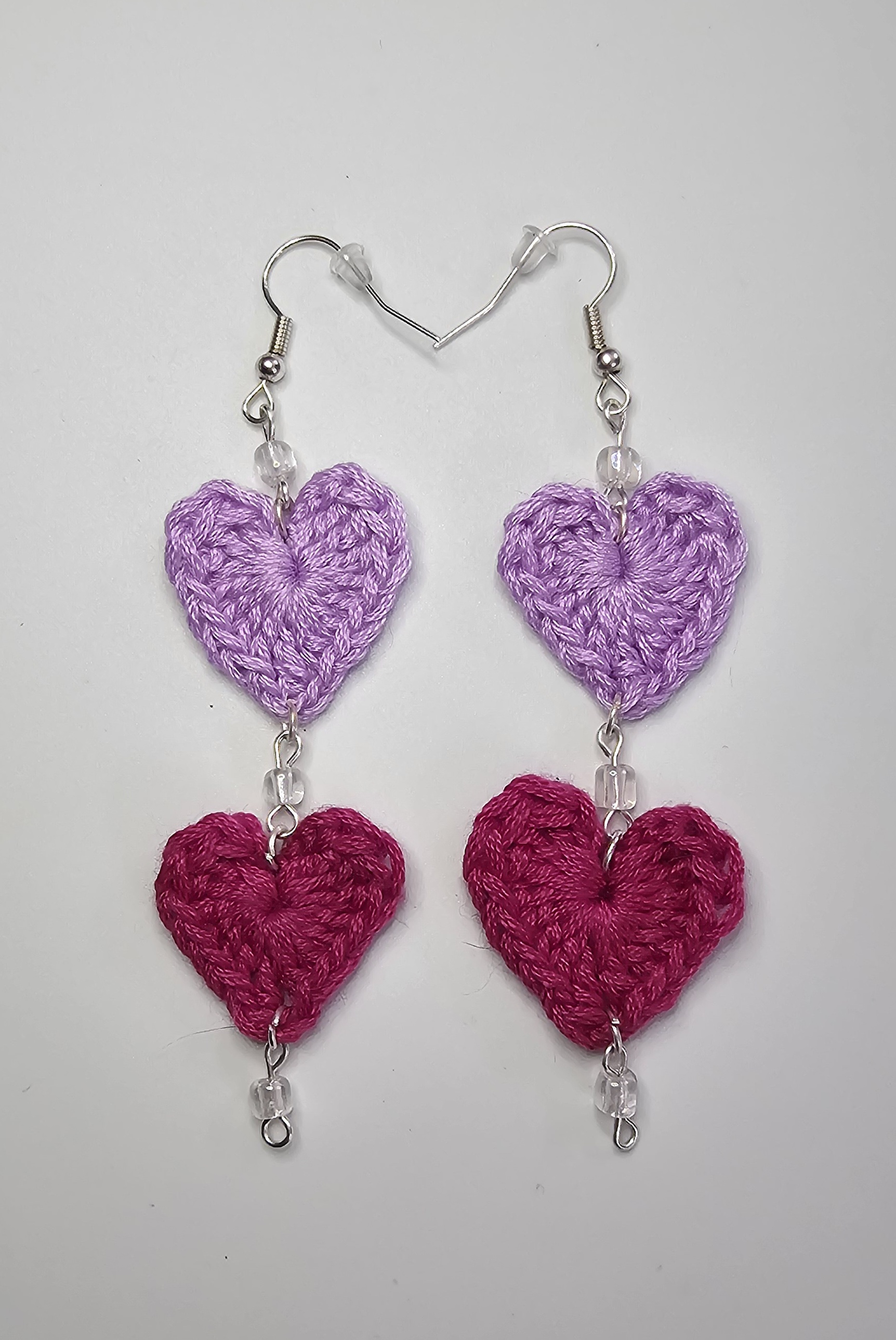 Fall in love with these beautiful, crocheted Two Hearts earrings. Whether you're getting ready for a night out on the town, a quiet dinner with a special someone, or just want to add some handmade flair to your style, these earrings are for you!