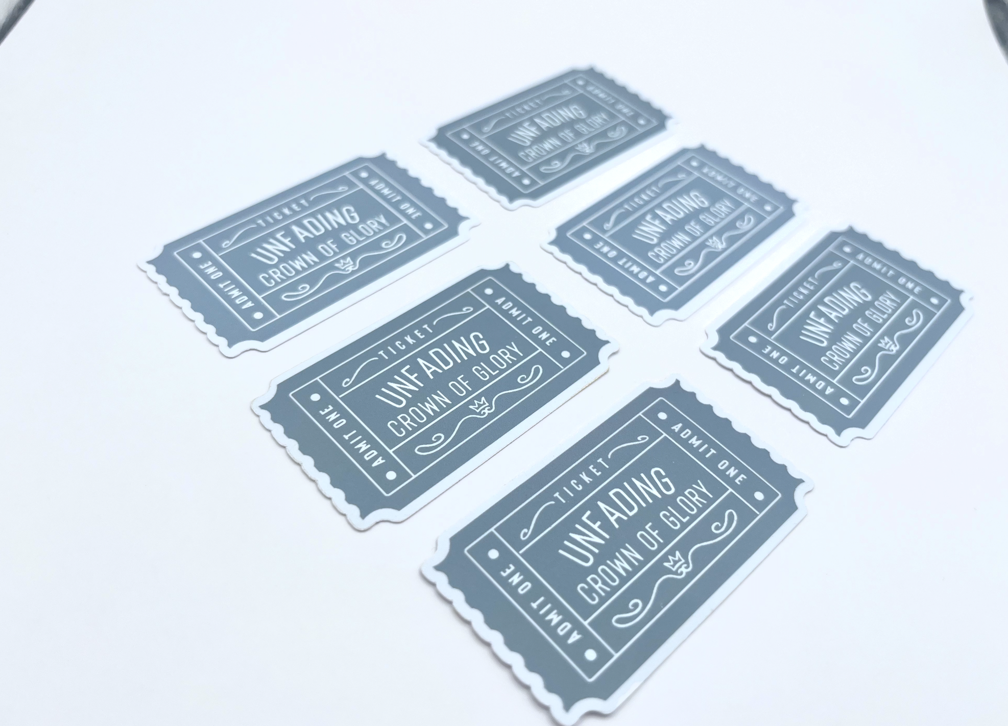 The Unfading Crown of Glory Ticket Sticker is a small yet powerful reminder of the eternal reward promised to those who persevere in faith. With its elegant matte finish and symbolic ticket design, this sticker adds meaning and encouragement wherever you place it.