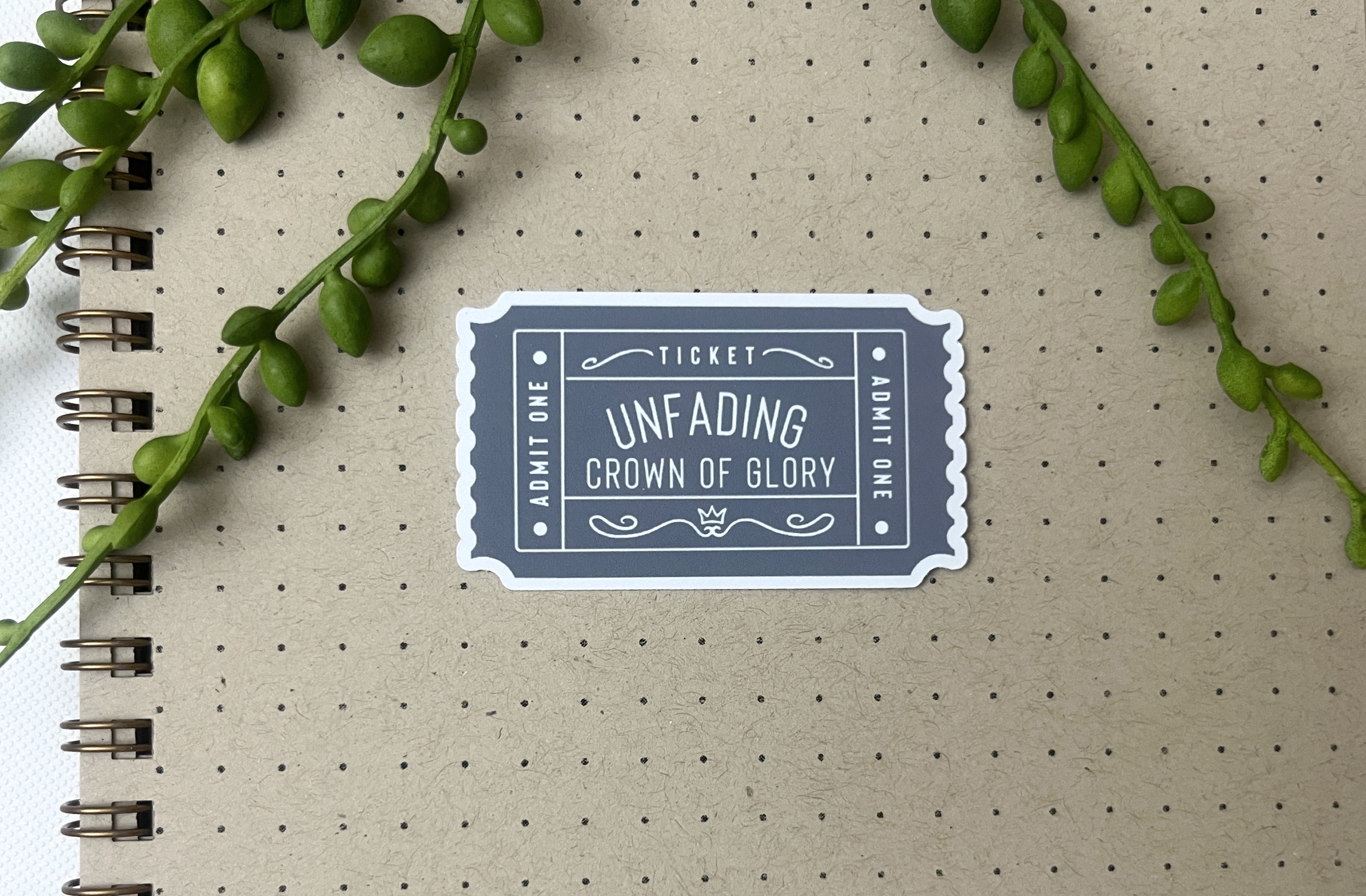 Unfading Crown of Glory Ticket Sticker – Matte Christian Verse Art | Faith Encouragement & Bible Journaling Gift