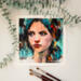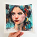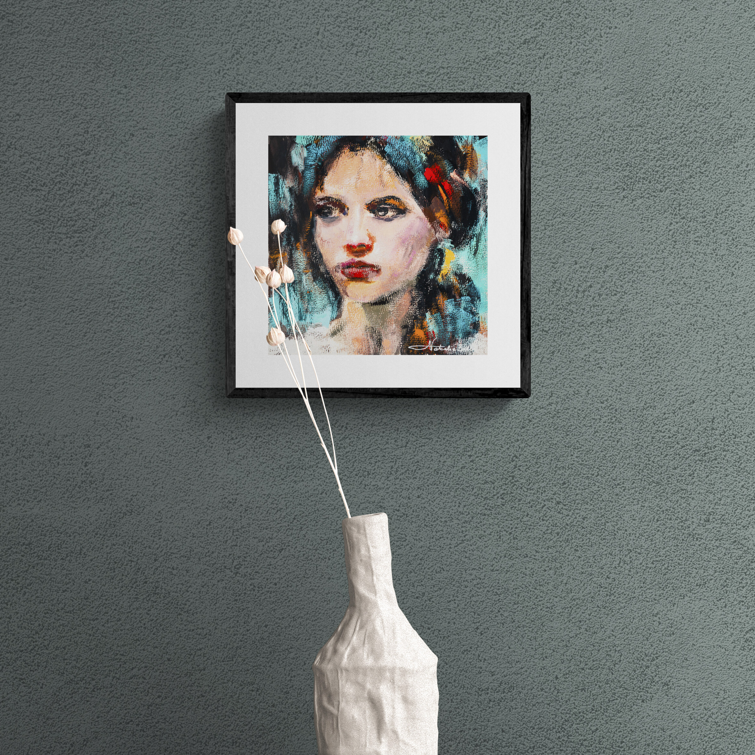 This expressive portrait captures a moment of raw vulnerability and strength. Painted with vibrant gouache on quality watercolor paper, "Unguarded" explores the interplay of bold turquoise and warm flesh tones that dance across the subject's face.