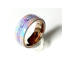 This very unique “Unicorn Poop” DiamondCast ring displays sparkling soft pastel coloring and is is inlaid with a special mixture of opals and pigment. This ring is 6mm wide in the liner of your choice. Diamond Dust Ring made of real diamonds! Comes with a Certificate of Authenticity for the diamonds.