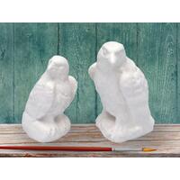 This listing includes 2 unpainted ceramic angel figurines. The taller angel statue is 4 1/2 inches tall and 2 1/4 inches wide at the wings. She is 1 1/4 inches deep. The smaller angel is 3 inches tall, 2 inches wide at the wings, and 1 1/4 inches deep.