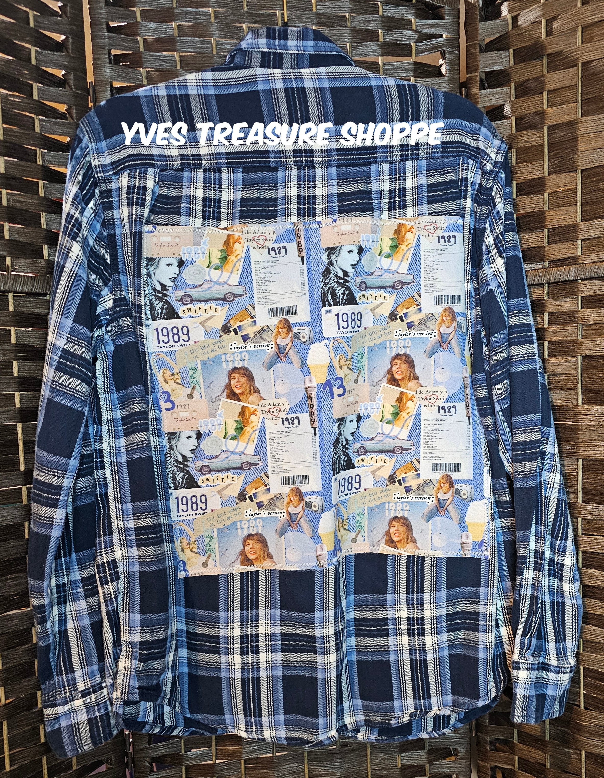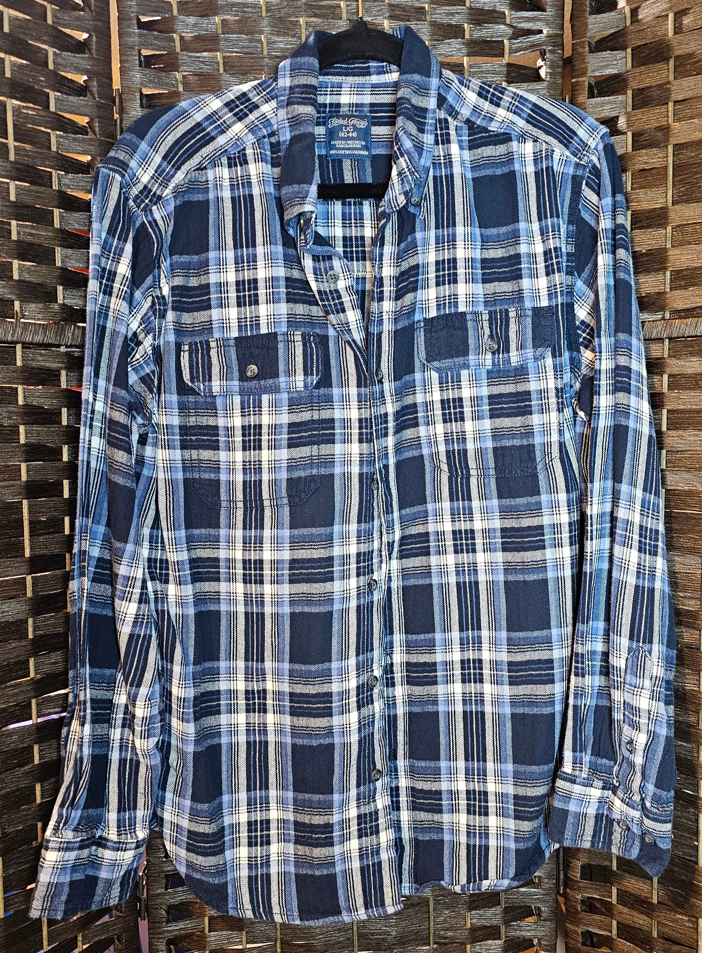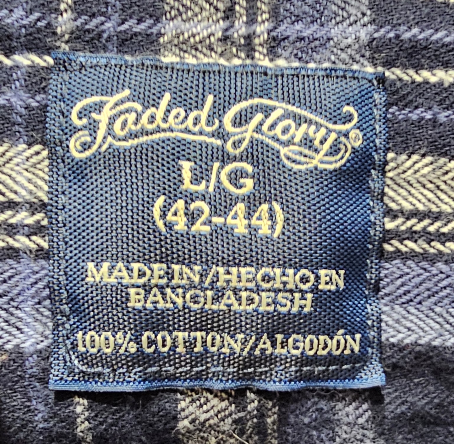 This is an upcycled Faded Glory Large Shirt. 24 inches across pit to pit. 29 inches long from top of shoulder to bottom of shirt. Embellished on back with a fabric Panel.