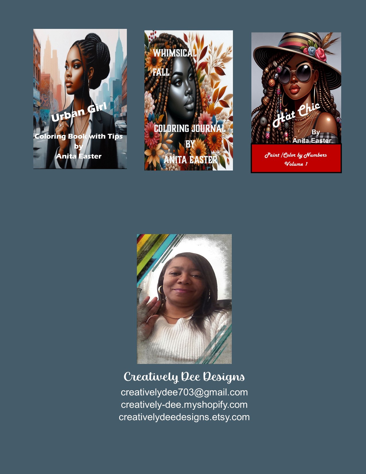 Welcome to Creatively Dee Designs where you are encouraged to explore your artsy side. I am a self-taught artist who specializes in hand-drawn African American coloring books and color-by-number books. I also create unique stationary, large desk mats, mousepads, book sleeves, and book/tablet pouches.