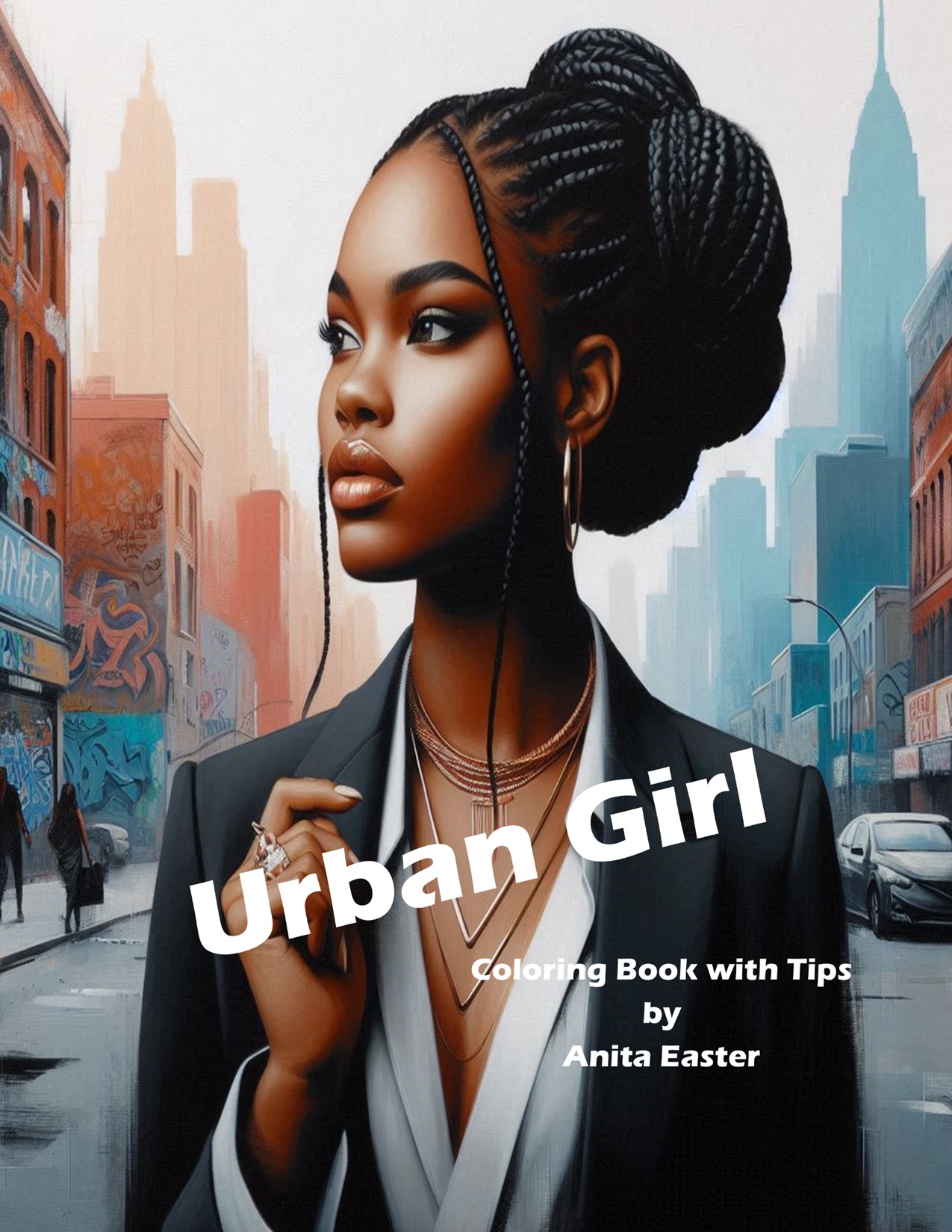 Urban Girl is a different type of coloring book. It features beautiful African American women in an urban setting. On the left page is a picture with instructional tips on how to shade for you to practice on and the right page is the regular drawing for you to color alone. The pages are all stand alone pages so that whatever media you choose will not bleed through to the other pages. If you are looking for just a coloring book with the same class, but without instructions, you want to check out the Urban Girl 2 coloring book.