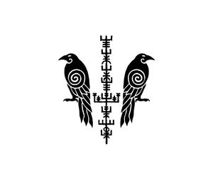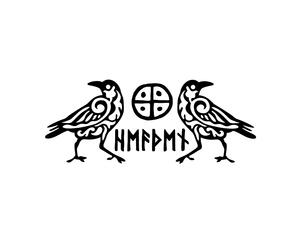 Odin's Ravens Huginn and Muninn with Futhark Vinyl Cut Sticker