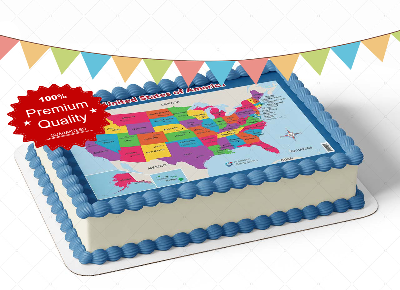 USA United State of America Map Edible Image Themed Edible Birthday Party Cake Topper Sheet Edible Sticker Decal