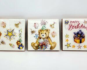 Each coaster has small rubber bumpers on the underside to prevent slipping and damaging tables or countertops.
