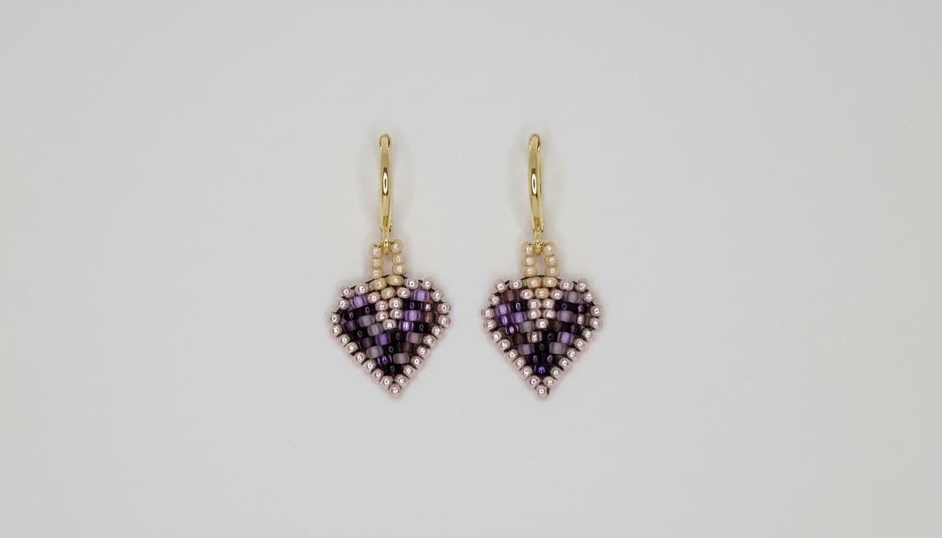 Velvet Plum Heart Earrings lean into rich violet and plum tones framed by soft blush and pearl edges.