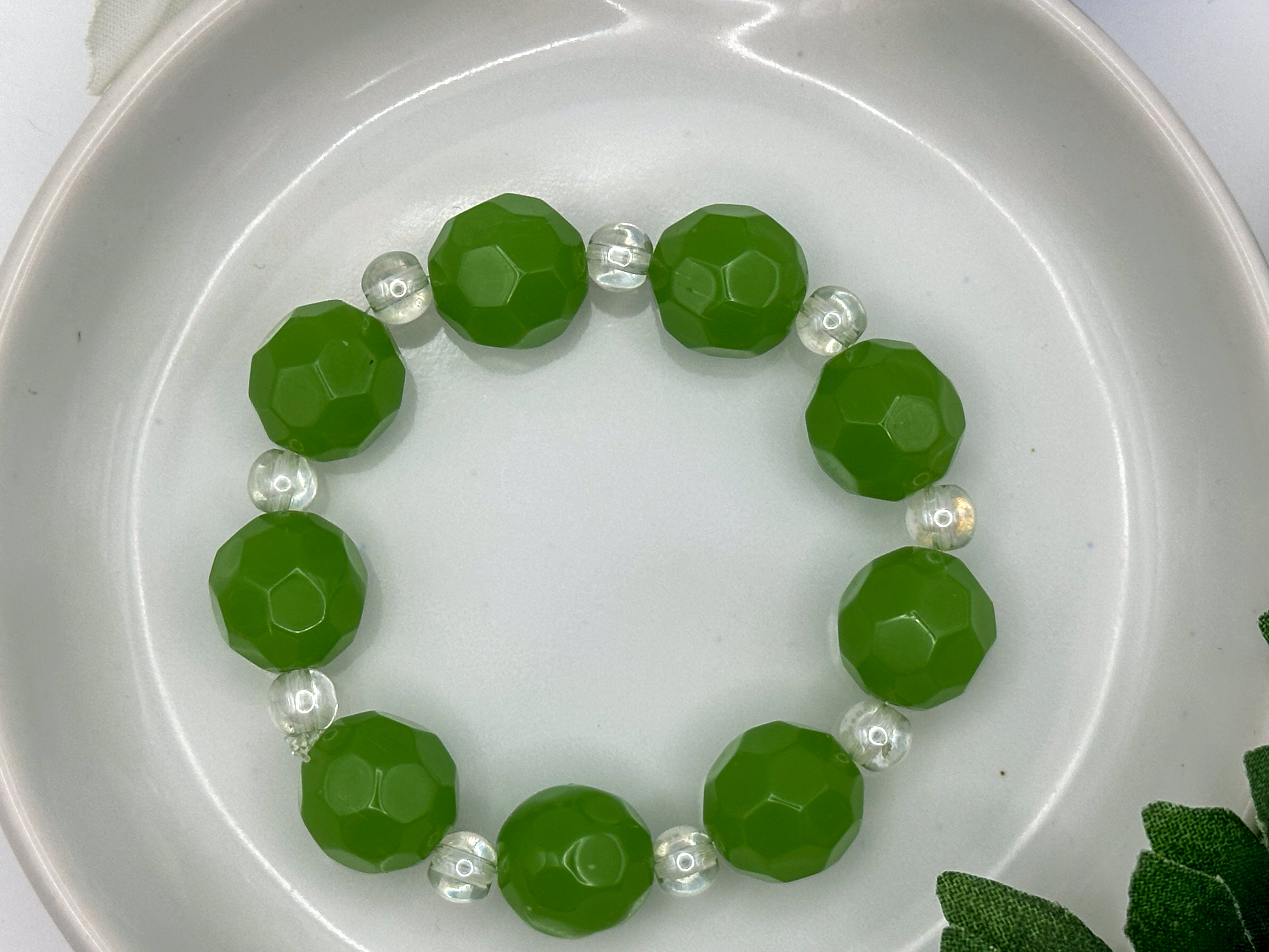 Verdant Glow Bracelet – Faceted Green Glass with Clear Crystal Light